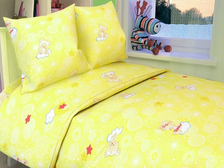 Постельное бельё в кроватку "АКВАРЕЛЬКА" из бязи, Мишки в облаках бело-желтый