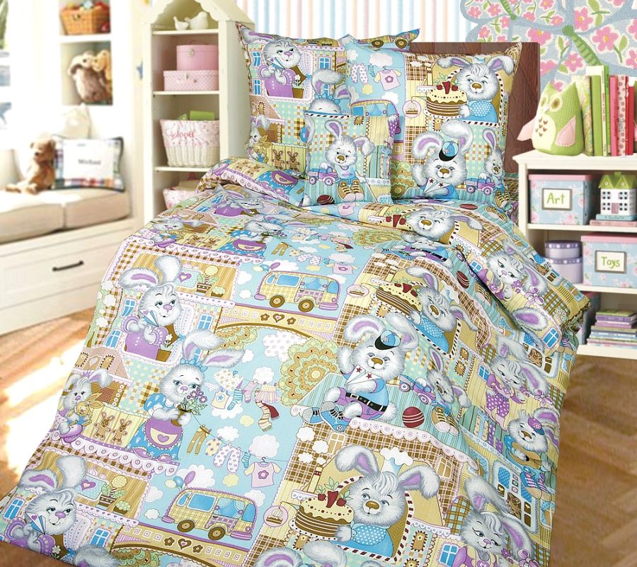 Постельное белье в кроватку "Бамбино" с простыней на резинке, Зайкин город 1