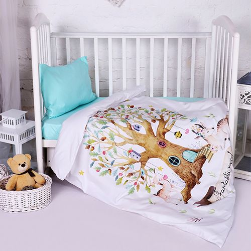 Постельное белье в кроватку "BabyRelax" примиум сатин с фотопечатью, Сказочное дерево