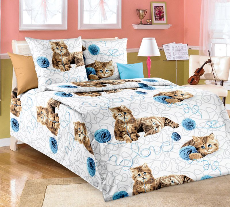 Детское постельное бельё из бязи "Всё себе", Котики с клубочком