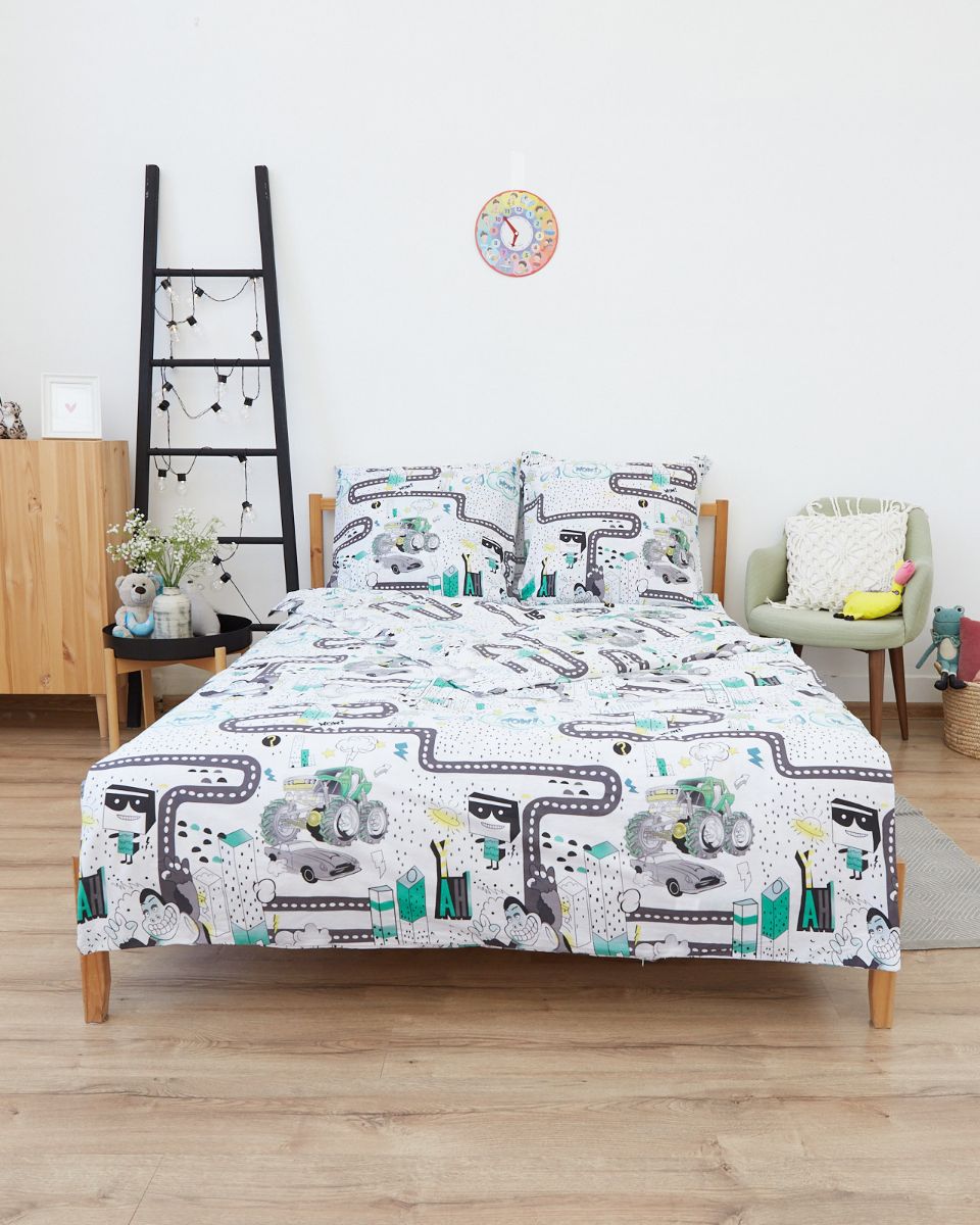 Детский комплект постельного белья выполнен из 100% хлопковой ткани поплин, которая отличается мягкостью и нежностью, а также средней плотностью (110 гр/м), способностью хорошо впитывать влагу и отлично пропускать воздух, благодаря этому Вам обеспечен комфортный отдых как в жаркое, так и в холодное время года. Пододеяльник и наволочки оснащены удобной длинной застежкой на молнии (тонкая, потайная, расположена с короткой стороны), что значительно упрощает вкладывание туда одеяла и подушек. Детское постельное белье изготовлено из цельной, широкой ткани без шва посередине простыни, пододеяльника или наволочек, что увеличивает уровень комфорта таких изделий по сравнению с моделями, сшитыми из более узкой ткани. При правильном уходе (стирка не более 40 градусов) детский кпб прослужит долго, сохранив форму и цвет. В действительности рисунок такой же яркий как на картинке (фото товара реальное, а не 3D графика). Продукция упакована в красивую подарочную упаковку (можно использовать для хранения). Швы аккуратные и ровные, так как пошив осуществляется на промышленном швейном оборудовании. Изготовитель торговая марка «Всё себе» — это свежий Российский бренд, работающий под девизом «зеленый мир каждому». Вся продукция производится в России, строго из 100% хлопка, имеет сертификацию качества «Гост 31307-2005», а также зарегистрирована в государственной системе маркировки и прослеживания «Честный знак».