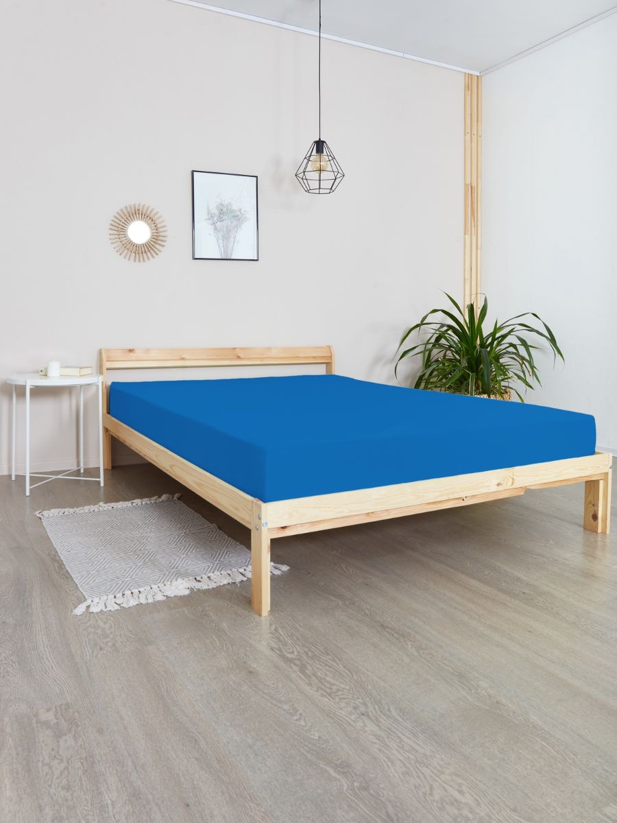 Простыня на резинке трикотаж "Всё себе", Синий