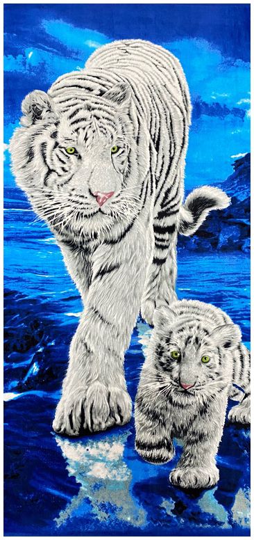 Полотенце пляжное "Всё себе" махровое, Белый тигр с тигренком