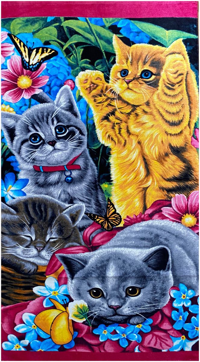 Полотенце пляжное "Всё себе" махровое, Котята в цветах
