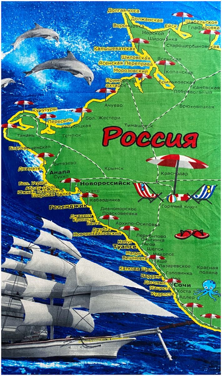 Полотенце пляжное "Всё себе" махровое, Россия и Корабль