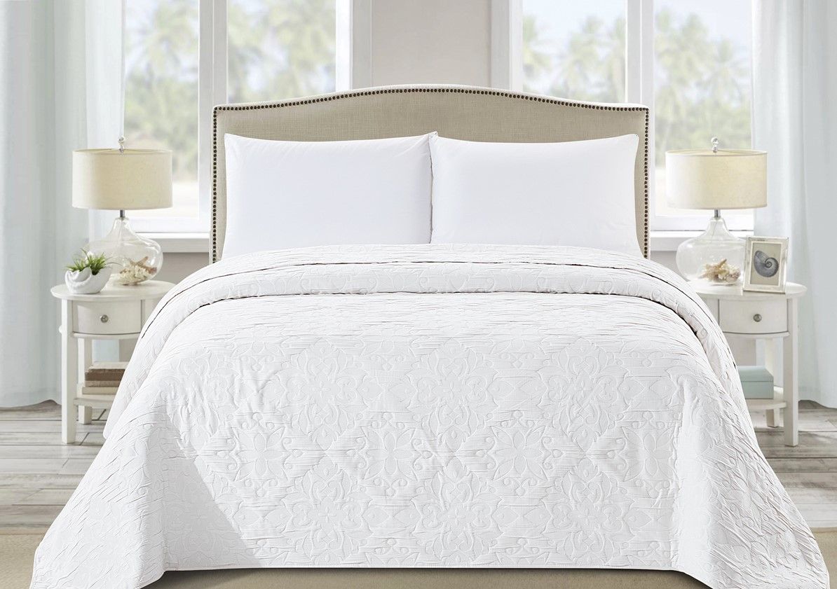 Покрывало коллекции «Caroline» стеганное двусторонее, износостойкое и прочное, с мягкой, приятной на ощупь поверхностью, станет прекрасным элементом интерьера вашего дома. В изготовлении покрывал используется Полиэстер – синтетическая ткань, которая обладает рядом преимуществ: не требует особого ухода, пропускает воздух, дарит приятную и легкую прохладу, это особенно важно жаркие дни, очень быстро сохнет, легко стирается, не мнется, не тянется, краски останутся яркими и сочными долгое время. Два варианта стежки, оригинальный узор. По периметру изделия отделка косая бейка. Покрывало торговой марки Cleo. Вся продукция производится в России в городе Иваново, имеет сертификацию качества «Гост 31307-2005», а также зарегистрирована в государственной системе маркировки и прослеживания «Честный знак».