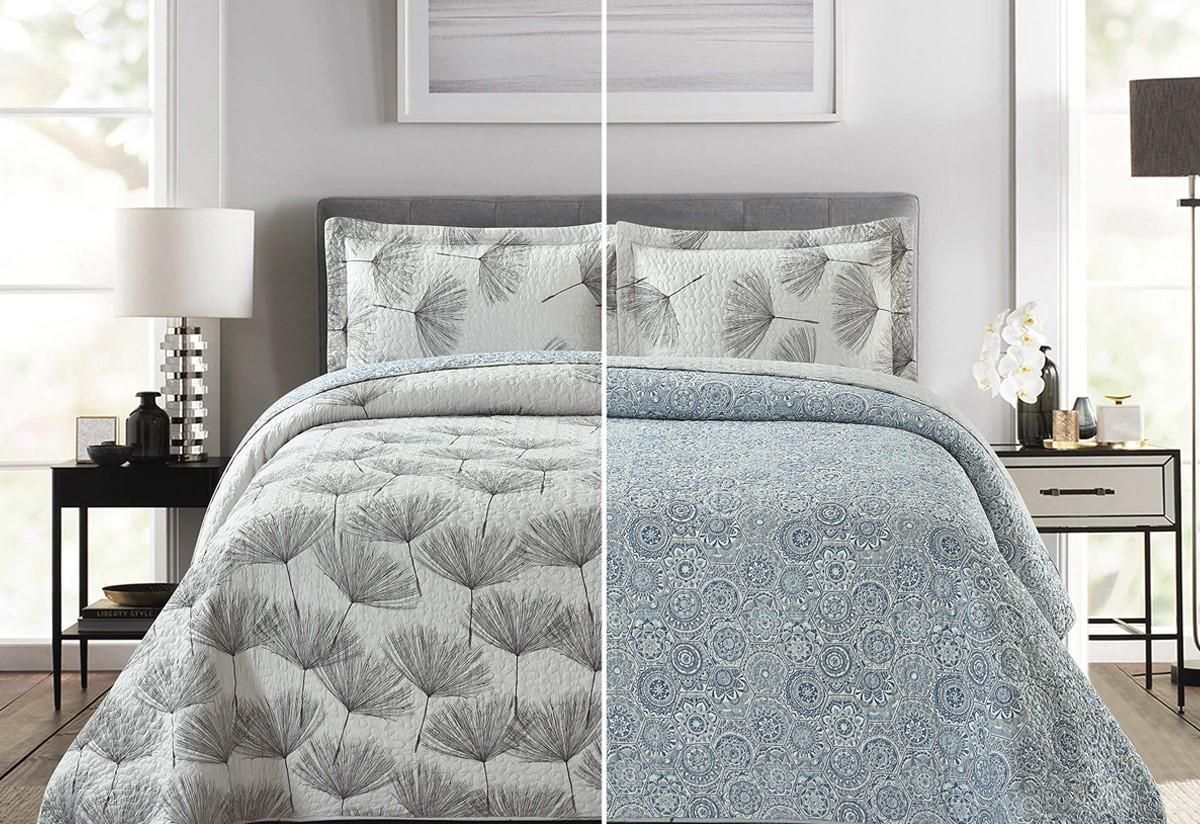 Коллекция двусторонних покрывал с наволочками CLER - это два дизайна в одном покрывале, игра вкусов и стиля. Коллекция выполнена из микросатина - ткани нового поколения. Это тончайшее нежное микроволокно с пич-эффектом (обработка, придающая ткани мягкость и бархатистость). В комплекте с наволочками 50х70 см. По периметру отделка косой бейкой.