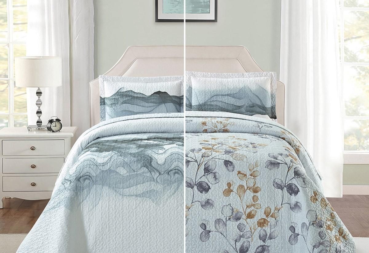 Коллекция двусторонних покрывал с наволочками CLER - это два дизайна в одном покрывале, игра вкусов и стиля. Коллекция выполнена из микросатина - ткани нового поколения. Это тончайшее нежное микроволокно с пич-эффектом (обработка, придающая ткани мягкость и бархатистость). В комплекте с наволочками 50х70 см. По периметру отделка косой бейкой.