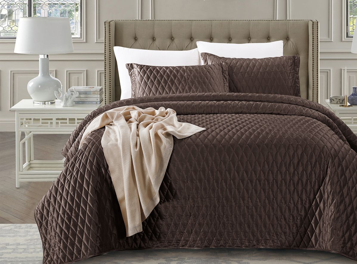 Покрывало представляет собой многослойное изделие, для внешнего слоя которого используется велюр (100% полиэстер), а для внутреннего – полиэфирное волокно. Изделие отличается легкостью, но при этом отлично сохраняют тепло. Благодаря этому покрывало можно использовать в качестве одеяла. Для того, чтобы внутренний слой не сбивался в комки и создать фактурность внешних слоев, по всей площади покрывала производится простежка (прошивание). Это также поможет сделать поверхность кровати ровной, даже, если постельное белье сложено не совсем аккуратнo. При правильном уходе (стирка не более 40 градусов) прослужит долго, сохранив форму и цвет. Швы аккуратные и ровные, так как пошив осуществляется на промышленном швейном оборудовании.В даннной коллекции предусмотрено наличие наволочек. Покрывало торговой марки "Tango", Китай/Турция. Вся продукция зарегистрирована в государственной системе маркировки и прослеживания «Честный знак».