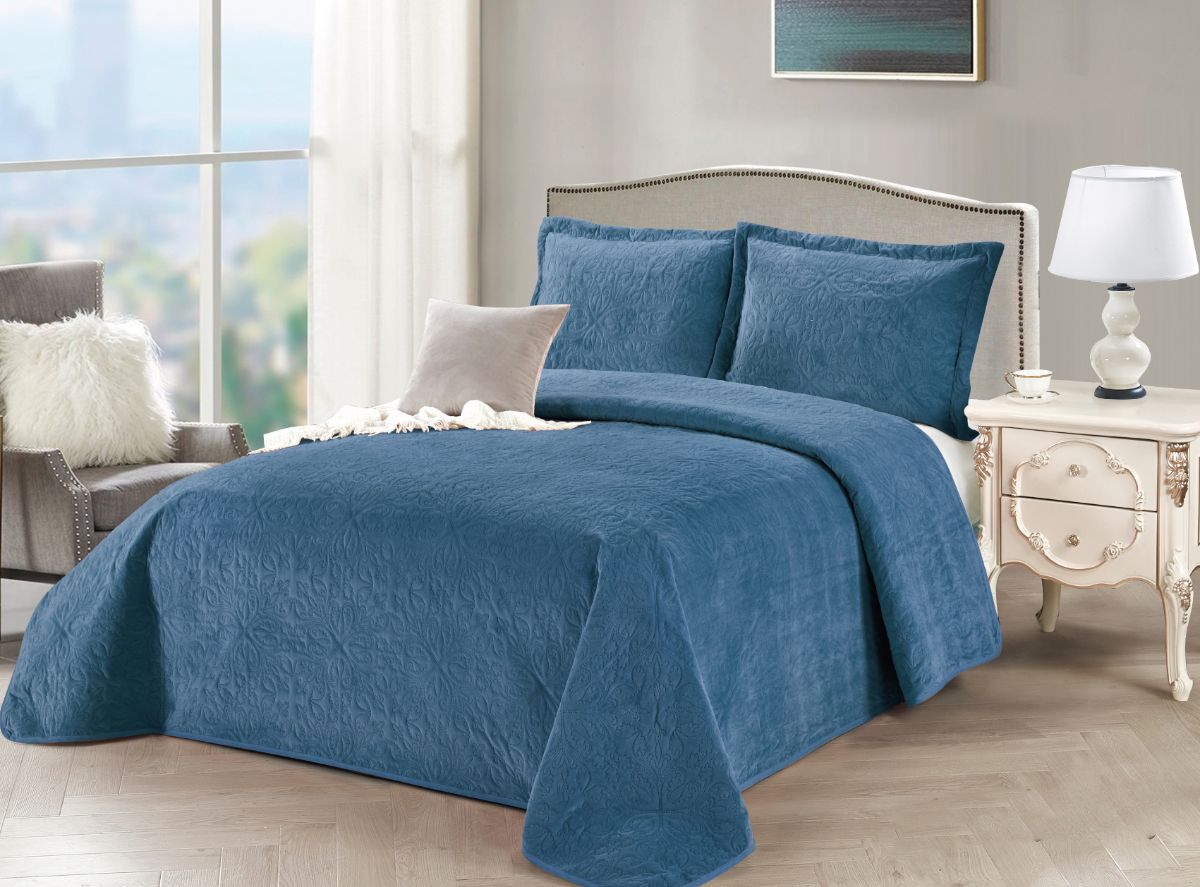 Покрывало представляет собой многослойное изделие, для внешнего слоя которого используется велюр (100% полиэстер), а для внутреннего – полиэфирное волокно. Изделие отличается легкостью, но при этом отлично сохраняют тепло. Благодаря этому покрывало можно использовать в качестве одеяла. Для того, чтобы внутренний слой не сбивался в комки и создать фактурность внешних слоев, по всей площади покрывала производится простежка (прошивание). Это также поможет сделать поверхность кровати ровной, даже, если постельное белье сложено не совсем аккуратнo. При правильном уходе (стирка не более 40 градусов) прослужит долго, сохранив форму и цвет. Швы аккуратные и ровные, так как пошив осуществляется на промышленном швейном оборудовании.В даннной коллекции предусмотрено наличие наволочек. Покрывало торговой марки "Tango", Китай/Турция. Вся продукция зарегистрирована в государственной системе маркировки и прослеживания «Честный знак».