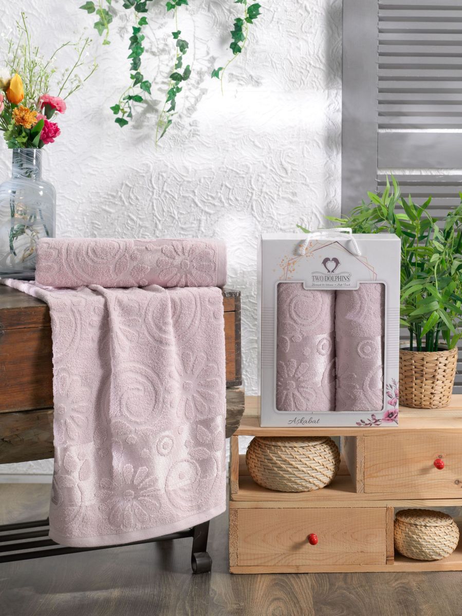 Набор полотенец "ASKABAT" махра, 10911-светло-розовый