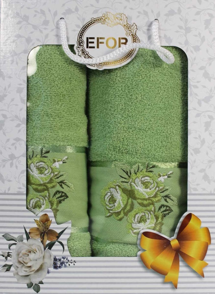 Набор полотенец "Еfor", махра (50х90+70х140), Королевская роза зеленый