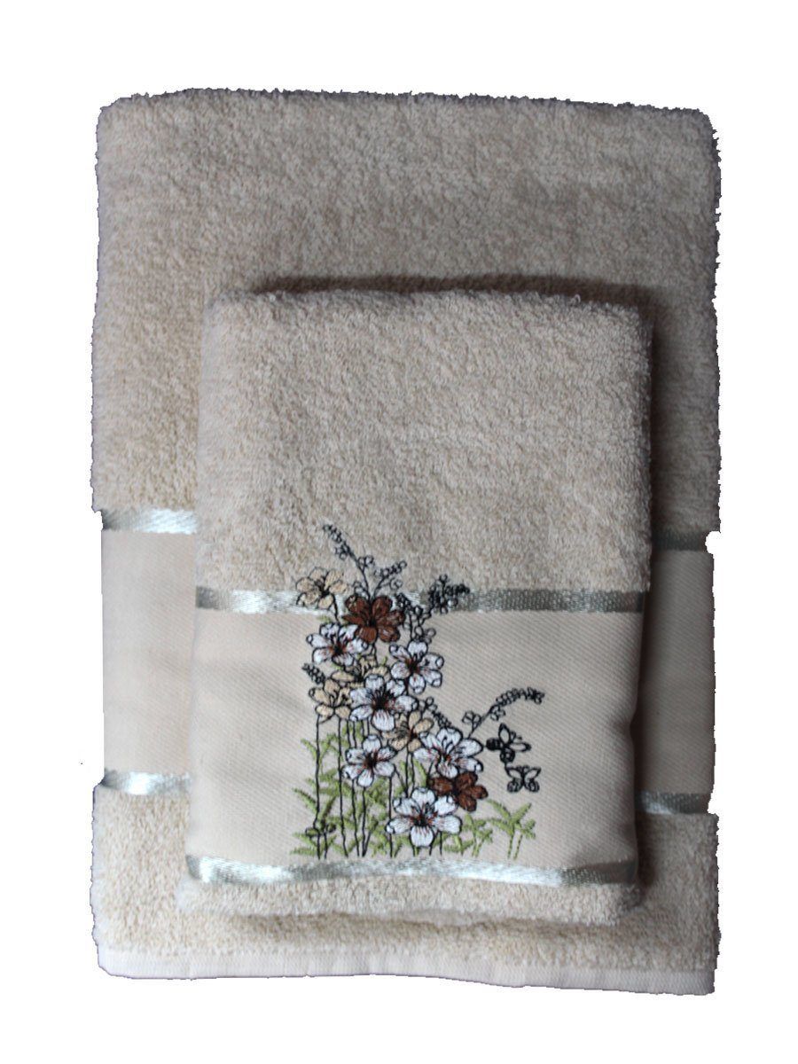 Набор полотенец "Еfor", махра (50х90+70х140), Мелкие цветы капучино