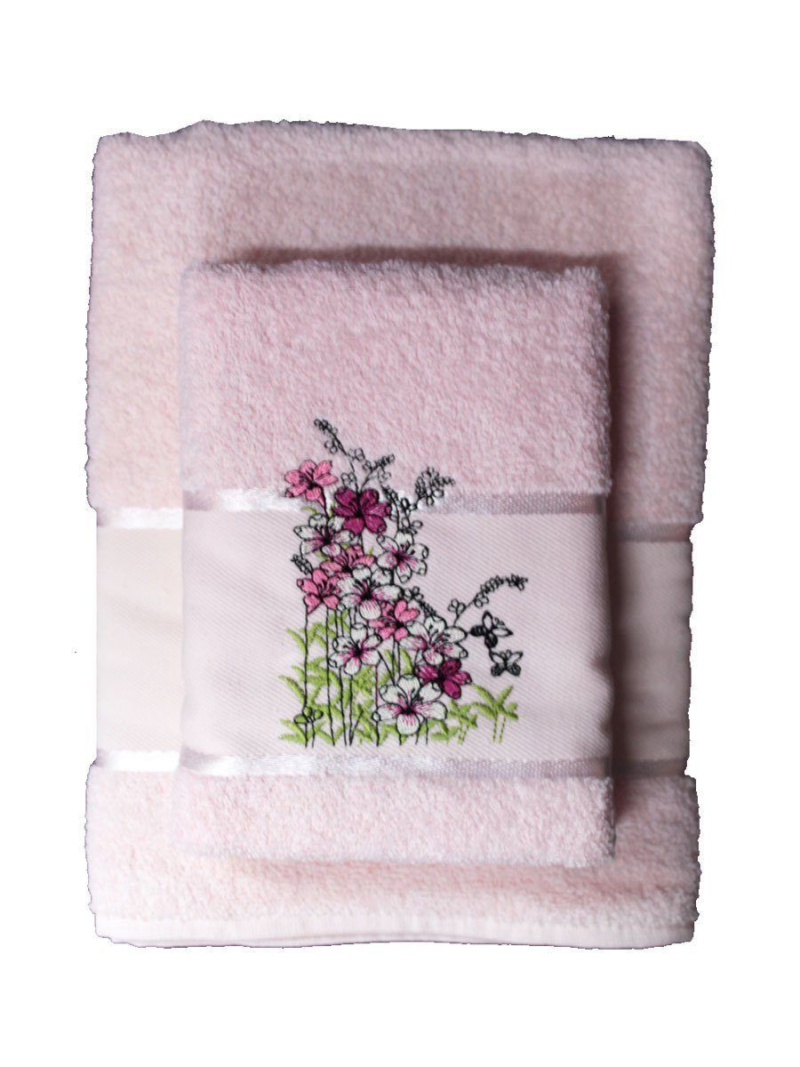 Набор полотенец "Еfor", махра (50х90+70х140), Мелкие цветы розовый