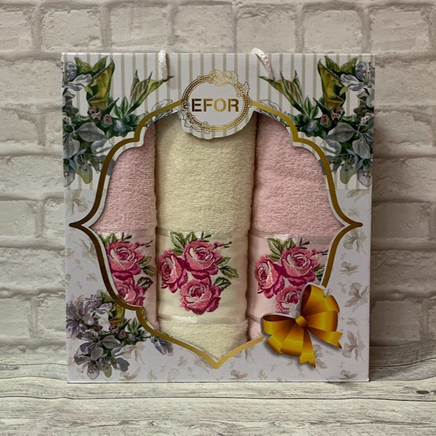 Набор полотенец "Еfor", махра, Королевская роза, персик