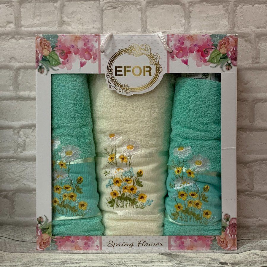 Набор полотенец "Еfor", махра, Полевая ромашка бирюза
