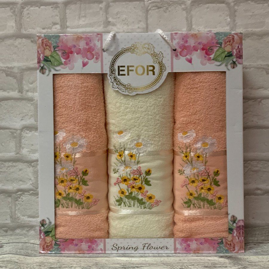 Набор полотенец "Еfor", махра, Полевая ромашка персик