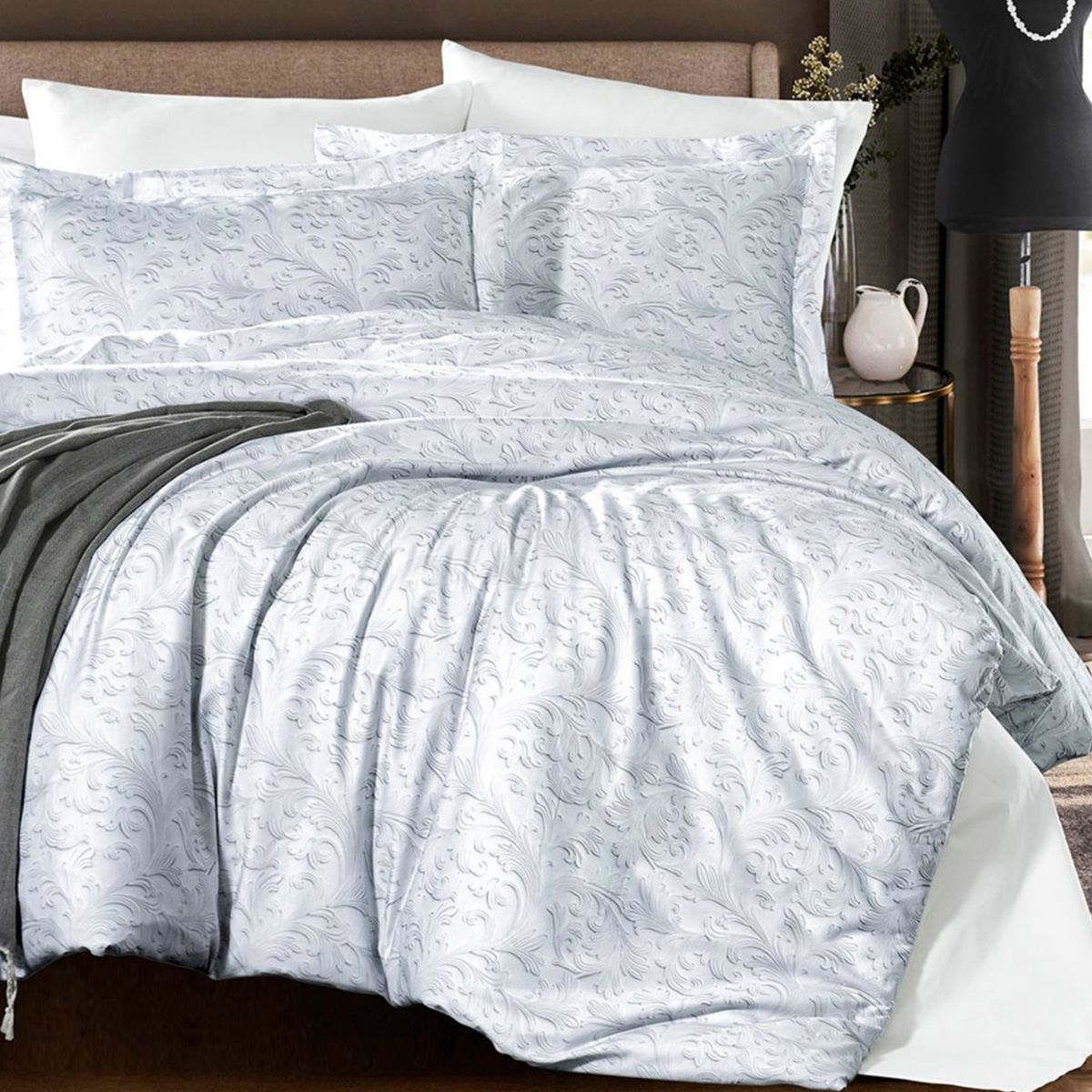 Постельное бельё из серии SATIN от турецкого бренда Ecosse. Изготовлен из гладкого и приятного на ощупь сатина высокой плотности, сотканного из высококачественного турецкого хлопка. Рисунок нанесён на ткань с помощью реактивной цифровой печати.