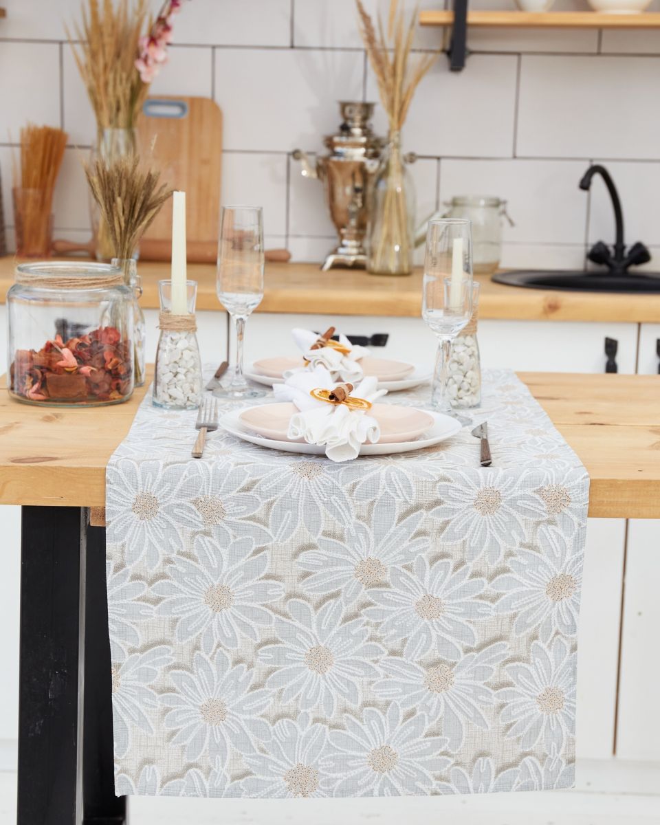 Дорожка на стол в подарочной упаковке "Всё себе", Ромашка серая
